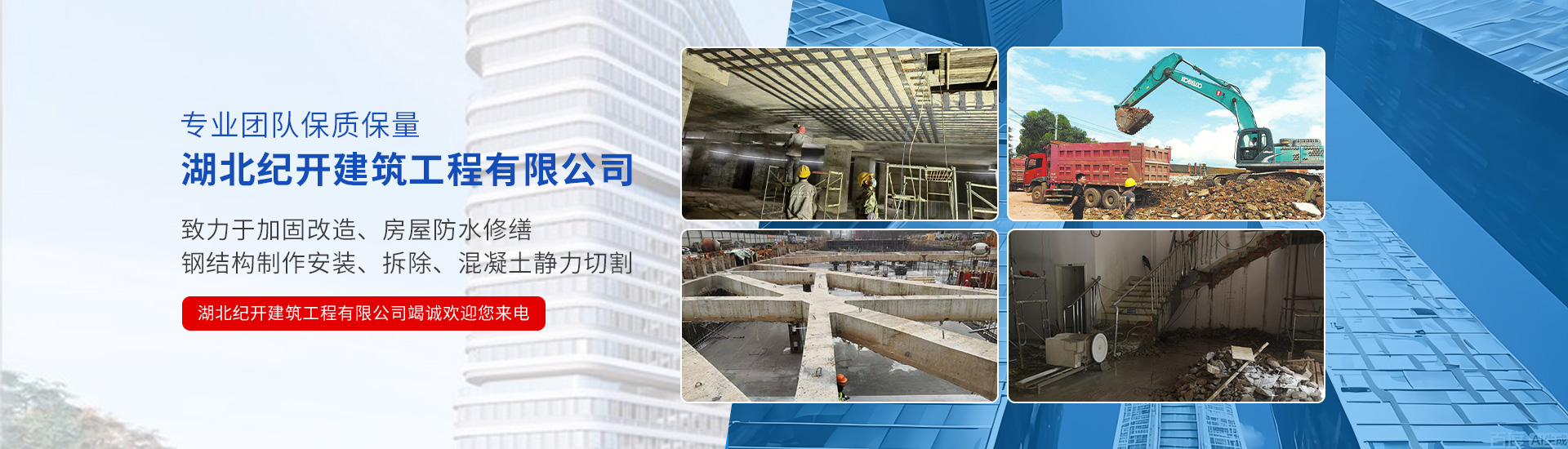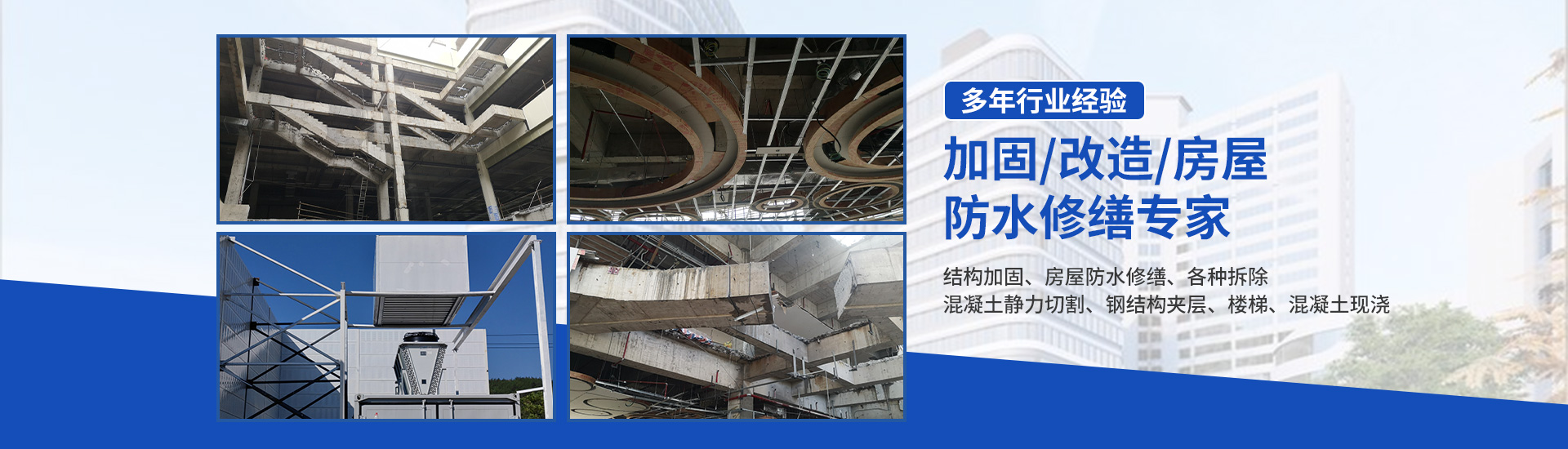 专业承接加固改造、防水修缮、钢结构安装、静力切割、拆除等工程